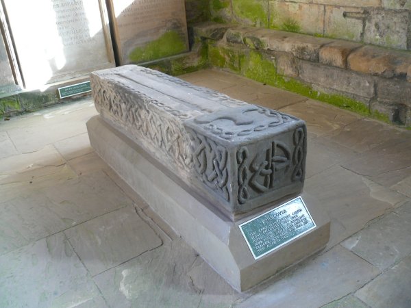 Early 12th century carved stone (reconstructed) once formed the top of an important tomb thought to be that of John Capellanus, Bishop of Glasgow who was buried near the high altar in 1147.