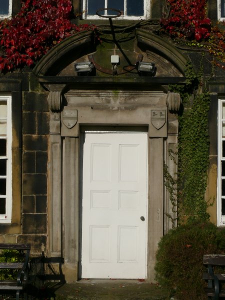The original front door with the Shiercliffe shield on the lintel.