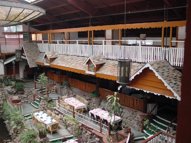 The view of the dining room from the third level, looking right Notice the green stairs at the bottom right