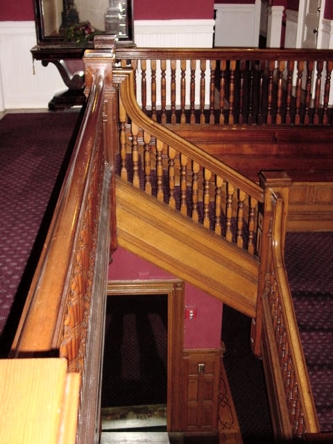 Standing on the third floor looking down to the second floor. The mirror next to room 208 can be seen at the bottom of the picture..
