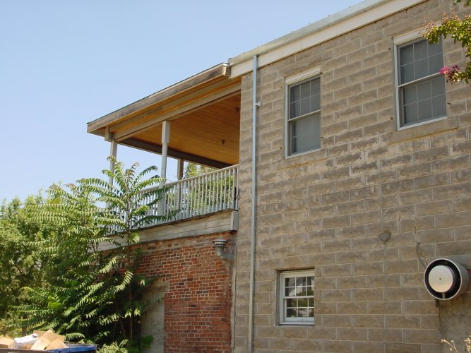 The outside of the hotel, back left and back veranda