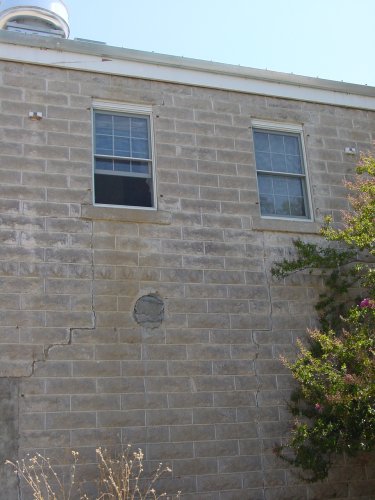 The outside of the hotel, back left , room 13's windows
