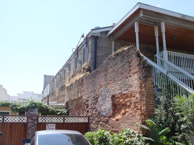The outside of the hotel, back right wall and back veranda steps