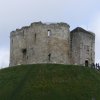 Clifford's Tower is what remains of York Castle, built in 1068 as a wooden defense after William took the Viking capital of York. The building was burnt several times, and rebuilt in stone in the late 1100's, and in a quatrefoil floor plan, the only one in England. It was possibly named Clifford Tower in 1322 as Roger de Clifford was hung there for his part in the Tickhill rebellion against King Edward II. The worst of its history occurred when the crowning of Richard I and his proclamation to join the Crusades started a rumor that he had ordered English Jews to be attacked. Richard de Malbisse instigated the mob violence by torching the house of a merchant he owed money to. Josce of York led his fellow Jews to the safety of the castle, and after a long siege, they killed each other and set fire to the wooden building, choosing death over renouncing their faith, using fire to prevent their mutilation. The castle was eventually in disrepair, used as a jail (closed in 1929) and for storage. In the spring, the hill on which it perches is covered in yellow daffodils. The fact that this castle is at the top of a rather steep hill smack dab in the middle of a now modern town is rather amazing to see. |