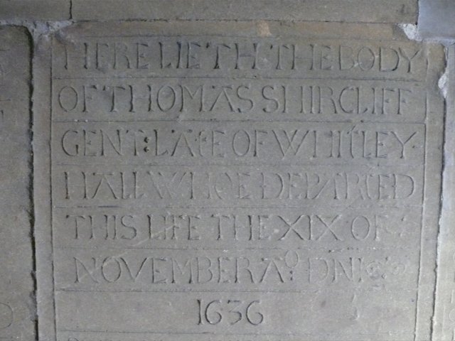 The tablet or grave stone of Thomas Shiercliffe, son of Robert, circa1575 to 1636