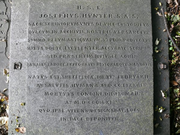 Joseph Hunter's grave stone - in Latin