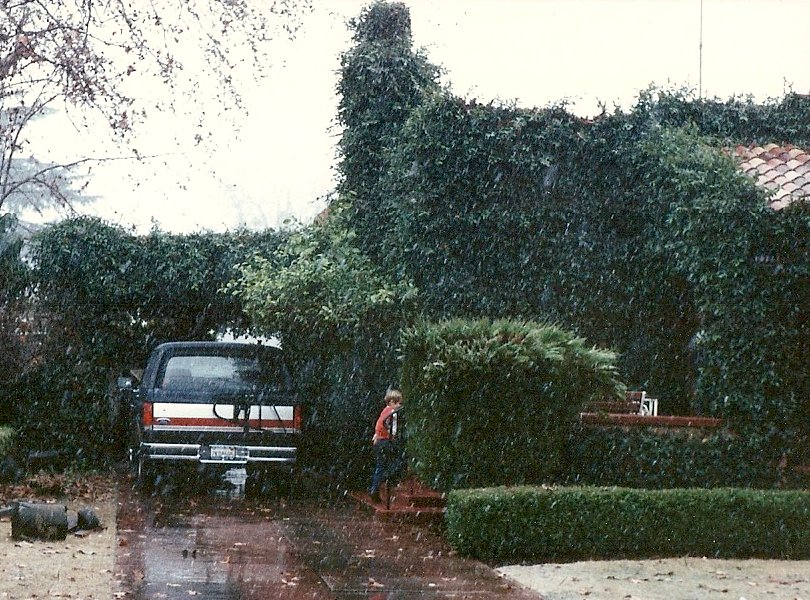 We are all sitting at the dining room table having dinner, within sight of the front door across the living room. The door opens. Everyone at the table says, "Hi, Andy!" We joke about how Andy simply will not close the doors. We are all gathered around the television, cuddled on the couches, a fire going. The tv clicker is on the coffee table in plains sight and the channel changes. It changes again. We moan at the choice of station, holler at Andy that is is not what we wanted to watch, get up to get the clicker and put the station back where we had had it. The station changes again. John comes out of his bedroom and complains that his floor is wet. A puddle of water about two feet wide is sitting there in the middle of the room, no open windows, no leaks in the roof, no overturned glass or bottle. This is how we lived.