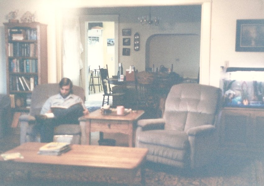 We are all sitting at the dining room table having dinner, within sight of the front door across the living room. The door opens. Everyone at the table says, "Hi, Andy!" We joke about how Andy simply will not close the doors. We are all gathered around the television, cuddled on the couches, a fire going. The tv clicker is on the coffee table in plains sight and the channel changes. It changes again. We moan at the choice of station, holler at Andy that is is not what we wanted to watch, get up to get the clicker and put the station back where we had had it. The station changes again. John comes out of his bedroom and complains that his floor is wet. A puddle of water about two feet wide is sitting there in the middle of the room, no open windows, no leaks in the roof, no overturned glass or bottle. This is how we lived.