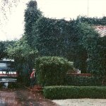 The only remaining pictures of the outside of the house, when it was covered in ivy and it snowed in February of 1989, an extremely rare event. There is actually a  large window behind that ivy, looking into the expansive living room. Since then, it has been stripped of the ivy, painted white, surrounded with black wrought iron gating. The front office windows can be seen on the far right of the first picture, above John in red, where Andy lived most the time.