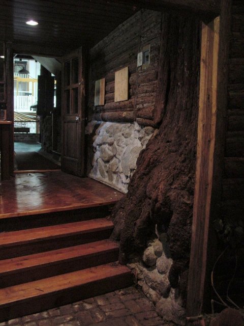 The wall built around an ancient tree trunk that speaks volumes Notice the dining room in the doorway