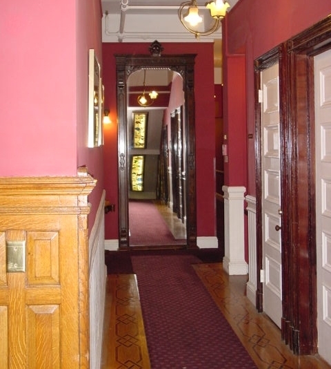 The mirror at the end of the hall, second floor. Room 208 is to the left.