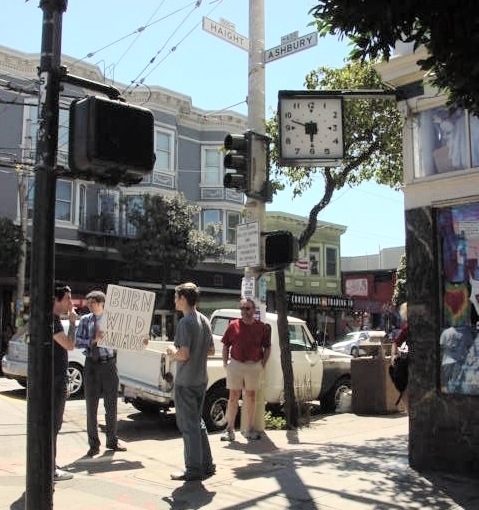 That's Dave in the red t-shirt watching a protestor. Some things never change..
