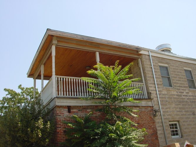 The outside of the hotel, back left , back veranda