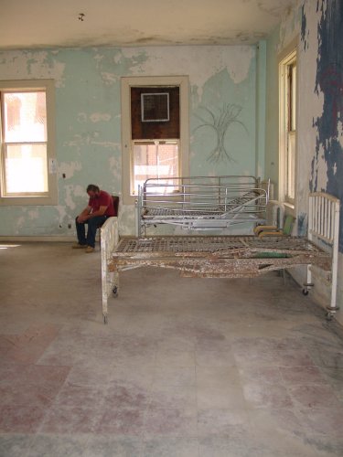 The infirmary, first floor annex. I asked David sit there, looking depressed. He is such a good sport!