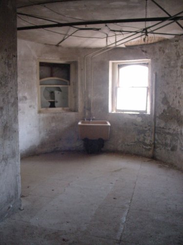 Round corner tower room in the basement